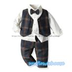 男の子 フォーマル 子供スーツ タキシード セット 3点セット 長袖 シャツ 蝶ネクタイ ベスト 出産祝い 七五三 お宮参り 70 80 90 100 110 120 130 140 150 160 ベビー フォーマル 幼児 サスペンダー ズボン 紳士服 入園式 卒園式入 学式 卒業式 発表会 結婚式 チェック柄