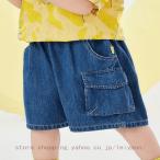 デニム ハーフパンツ 恐竜 90cm 100cm 110cm 120cm 130cm 140cm ワッペン ティラノサウルス ストレッチ アップリケ ポケット ウエストゴム 子供服 キッズ 男の子 ベビー ボーイズ カーゴ 半ズボン ネイビー 通園 通学 おでかけ