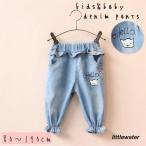 デニム 長ズボン キッズ ベビー 子供服 赤ちゃん 女の子 ロングパンツ 裾フリル ウエストゴム ポケット付き 股上深め ねこ かわいい おしゃれ カ
