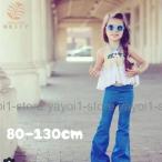 ロングパンツ ジーンズ 長ズボン キッズ ベビー ジーパン デニム フレア ブーツカット ベルボトム ウエストゴム カジュアル 無地 シンプル ジーパ