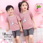 セットアップ 上下セット Tシャツ ハーフパンツ 子供服 キッズ ジュニア ベビー 半袖 半ズボン ラウンドネック デザイン豊富 姉妹 兄弟 お揃いコ