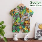 セットアップ 上下セット アロハシャツ ハーフパンツ 子供服 キッズ ベビー 男の子 女の子 スタンドカラー 半袖 半ズボン リーフ フラワー 南国風