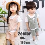セットアップ 子ども服 キッズ ベビー 男の子 女の子 トップス 半袖 ハーフパンツ 半ズボン 上下セット 2点セット 重ね着風 ベスト リボン チェ