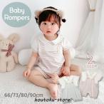 ロンパース カバーオール ベビー キッズ 女の子 男の子 重ね着風 つなぎ 半袖 襟付き 股下ボタン ボーダー柄 半ズボン サロペットパンツ風 レイヤ