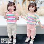 セットアップ 上下セット 2点セット キッズ ベビー 男の子 女の子 半袖 カットソー Tシャツ 長ズボン かわいい ボーダー レインボー 裾リブ ト