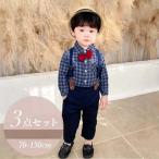 キッズ ベビー フォーマルスーツ 男の子 結婚式 赤ちゃん こども 子供服 紳士風 上下セット 長袖 チェック柄 シャツ ベスト パンツ ズボン 蝶ネクタイ 発表会