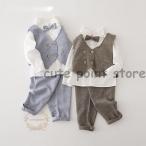 フォーマルスーツ 男の子スーツ キッズ 子供3点セットロンパース ベビー服 カバーオール長袖 卒園式入園式お宮参り結婚式七五三 新生児 幼児秋冬新作紳士 可愛い