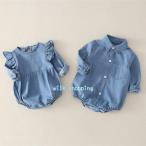 ロンパース 女の子 男の子 長袖 秋 春 デニム 肌着 綿 ベビー服 可愛い ロンパース 新生児 服 退院 ベビー 服 服