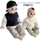 セットアップ おしゃれ ベビー ラウンドネック 袖なし セーター 女の子 ニット 上下セット ノースリーブ ベビー 長袖シャツ 子供服 スクール 男の