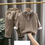 子供服 セットアップ セーター ニットカーディガン 上下セット ズボン シャツ 長袖 3点セット 男の子 キッズ フォーマルベビー服 大きいサイズ