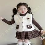 セットアップ キッズ ニットセーター 上下セット キッズ ベビー 幼児 女の子 春 冬 レザースカート ニット セーター フェイクファー ベスト 3点セット 厚手