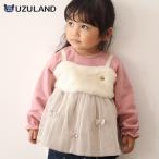 スウェットトレーナー 長袖 裏起毛 起毛あり チュール 重ね着風 リボン 女の子 ガールズ UZULAND ウズランド キッズ ベビー 80 90 95 100 110 120 130