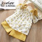 セットアップ 上下セット 子供服 キッズ ベビー 半袖ブラウス ショートパンツ 花柄プリント 肩紐 シャーリング おしゃれ