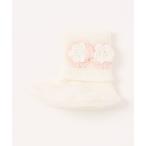 ベビーシューズ 編み花付きニットブーティ(9〜11)