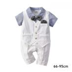 ベビーロンパース 子供服 ベビー服 男の子 カバーオール フォーマルスーツ つなぎ チェック 長袖 蝶ネクタイ ベスト セットアップ風 重ね着風 前あき 70 80 90