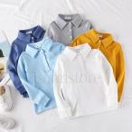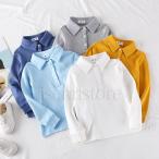 子供服 キッズ ベビー 男の子 女の子 襟付き ポロシャツ トップス 無地 シンプル おしゃれ 可愛い 長袖シャツ 通学 通園 90-100-110-120-130-140