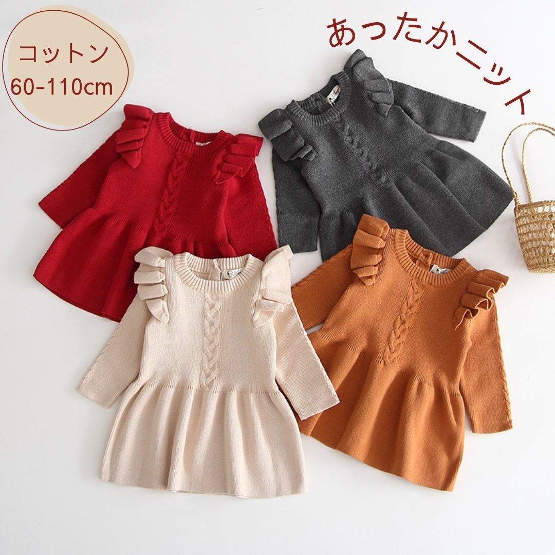 ベビー ニットワンピース 通販 女の子 ニット フリル ワンピース 子供服 キッズ ベビー服 ワンピ 長袖 ニットワンピ 可愛い かわいい オシャレ おしゃれ ベビー