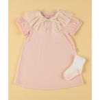 ベビー つけ襟付き半袖ワンピース・ソックスの入った1歳〜2歳対応女の子用ギフトセット
