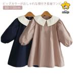 襟付きワンピース 長袖 キッズ ベビー 子供服 ビッグカラー ワンピース ひざ丈 女の子 ジュニア 可愛い セーラー風 おしゃれ シンプル
