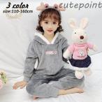 子供パジャマ 冬 モコモコ 女の子 フランネル ルームウェア レース 配色 帽付き 可愛い パジャマ 長袖 上下セット ベビー服 キッズ ジュニア 寝巻き 冬服