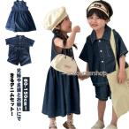 デニムワンピース 子供服 姉妹お揃い 兄弟お揃い セットアップ 半袖 ベビー服 上下セット シャツ ショートパンツ 男の子 女の子 姉妹 兄妹 幼稚園