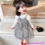 子ども服 女の子 セットアップ ベビー 上下セット 記念日 春 秋 キッズ 長袖トップス+スリングドレス 2点セット オシャレ 白トップス ヒョウ柄ワンピース 80-130