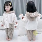 子供パジャマ 冬 モコモコ 女の子 フランネル ルームウェア レース 可愛い パジャマ 長袖 上下セット ベビー服 キッズ ジュニア 寝巻き 冬服