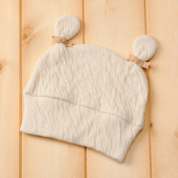 クーポン有!!オーガニックコットン くま耳ワッチ[ベビー]42〜48cm 日本製 サイズ調整 オーガニック 綿100% お耳付き ナチュラル 優しい 柔らか ワッチ コットンワッチ 赤ちゃん 新生児 男の子 女の子 国産 connectM オールシーズン 春秋冬 33-1003 帽子 メール便可