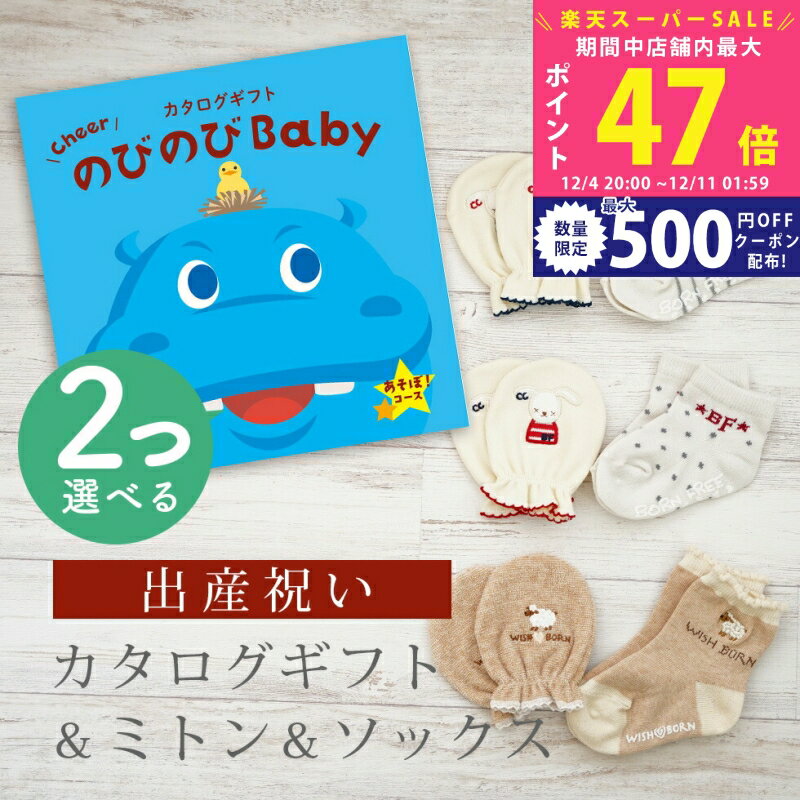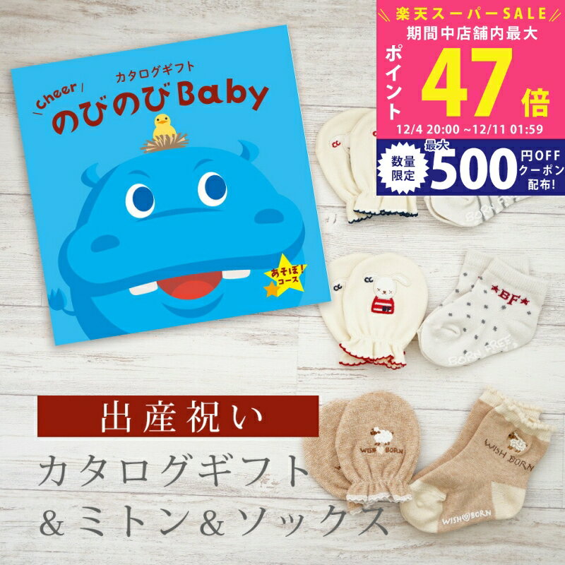 【SS特別P5倍&クーポン】出産祝い カタログギフト のびのび Baby 2つ選べる あそぼ!コース& ミトン & ソックス セット 1万円 2万円 【 ショート 靴下 手袋 3種から選べる すべり止め付き ビセラ 日本製 国産 お祝い 男の子 女の子 赤ちゃん ベビー シャディ】