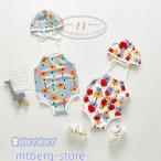 スクール水着 ベビー 水着 女の子 男の子 キッズ 子供 こども みずぎ かわいい スイミング 60-100cm 海水浴 旅行 カバーオール ロンパース 帽子付け