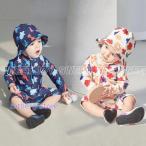 ベビー 水着 女の子 ロンパース 赤ちゃん 長袖 ラッシュガード キッズ 男の子 UVカット オールインワン スイムウェア 水遊び キャップ付き かわいい おしゃれ