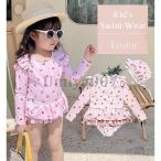 ベビー水着 ベビー スイムウェア キッズ 帽子 2点セット UVカット スイミング 女の子 ジュニア かわいい フリル さくらんぼ ラッシュガード ビーチ 紫外線対策