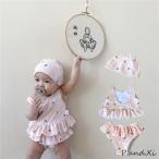 ベビー 水着 キッズ 女の子 ワンピース 帽子つき3点セット UVカット スイミング 子供 かわいい フリル 80 90 100 110 120 ラッシュガード スイムウェア