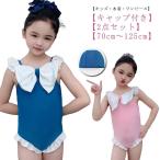 水着 キッズ 女の子 ベビー水着 帽子付き 2点セット ワンピース フリル 子供 こども ベビー かわいい ベビースイミング 赤ちゃん 小学生 幼稚園