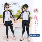 キッズ 水着 女の子 男の子 3点セット 子供 ジュニア 長袖 UVカット 海水浴 水泳教室 日よけ 競泳 透けない シンプル 可愛い