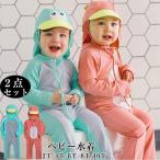 ベビー水着 キッズ 水着 男の子 女の子 キャップ付き ロンパース水着 2点セット 長袖 ラッシュガード UVカット 子供用 スイムウェア 海水浴