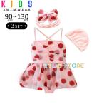 女の子 水着 ワンピース 帽子付き 3点セット いちご柄 スイムウェア ベビー水着 子供水着 キッズ水着 幼稚園 小学校 ミズギ おしゃれ かわいい 80 90 100 110