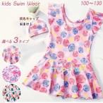 水着 女の子 ワンピース キッズ 子供服 保育園 幼稚園 プール 海 スイミング 貝殻 ピンク ボーダー 花柄 同色スイムキャップおまけ 100 110 120 130 140