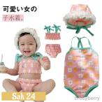 ベビー 水着 キッズ 女の子 ワンピース 帽子つき3点セット UVカット スイミング 子供 かわいい フリル 80 90 100 110 120 ラッシュガード スイムウェア