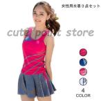 レディース 2点セット 上下セット 水着 露出控えめ ノンワイヤー 伸縮性 プール セパレート 体型カバー フィットネス セット 半袖