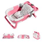 ベビーバス 折りたたみ 湯温計付き 滑り止め バスクッション付き 簡易収納 赤ちゃん お風呂 浴槽 バスタブ 沐浴 シンク(ピンク)