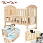 ベビーベッド 木製 新生児 ベビーベッド キャスター 高さ調整 赤ちゃんベッド プレイヤード マットレス付きゆりかご 蚊帳 付き 枕 出産祝い 爆買
