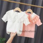 半袖ブラウス キッズ 女の子 フリル Tシャツ トップス フレア袖 子供服 無地 パフスリーブ 可愛い ベビー 小学生 通園 お外遊び着 海