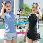 スクール水着 キッズ 子供水着 スイムウェア 無地 オールインワン ジュニア 2点セット セパレート 半袖 女の子 夏 水着セット 可愛い