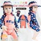ベビー水着 女の子 男の子 子ども水着 キッズ 可愛い クマ柄 ロンパース オールインワン ラッシュガード 長袖 フィットネス水着 スイムウェア 日焼け防止 帽子