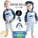 ベビー 水着 キッズ 男の子 子供水着 こども 2点セット サメ柄 なみ柄 オールインワン ラッシュガード 長袖 フィットネス みずぎ スイムウェア UV対策 帽子付け