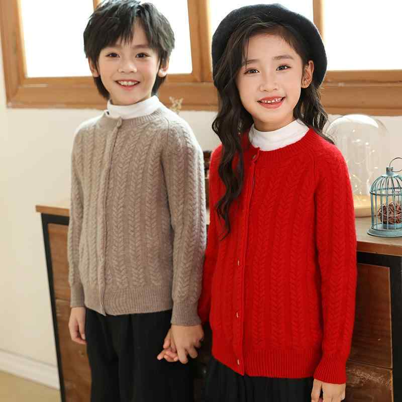 ニット・セーター キッズ ベビー カーディガン 厚手 ウール100% 男女兼用 ラウンドネック トップス 無地 かわいい 普段使い 青 桜桃 紫 ベージュ系