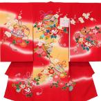お宮参り 産着 赤ちゃん 女の子 着物 長襦袢 祝着 一つ身 赤 鈴 糸巻 牡丹 梅 菊 金彩 0歳 日本製 正絹 取り寄せ 販売 zn033
