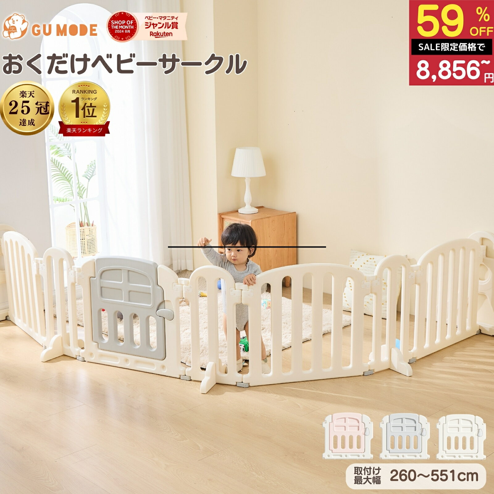 GU MODE ベビーゲート ベビーサークル 最大幅260〜551cm 置くだけ ドア付き プレイヤード ベビーフェンス 柵 フェンス パーテーション 間仕切り 爆買