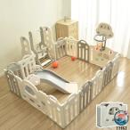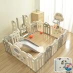 ベビーサークル 滑り台 ブランコ 折りたたみ 14枚セット 163*206cm 変形可能 扉付き 子ども すべり台 バスケットゴール付き おもちゃパネル ベビーゲート ベビー
